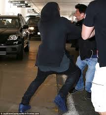 A video posted on celebrity news website TMZ of the incident shows the rapper glaring at photographers as he leaves the airport.